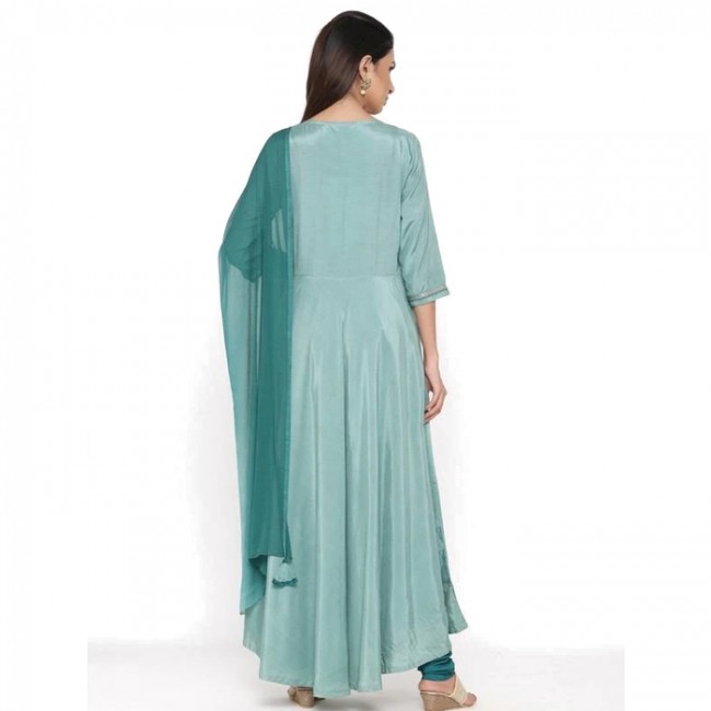 Sea Green Embroidered Silk Crepe Anarkali Kurta With Churidar Pant & Dupatta